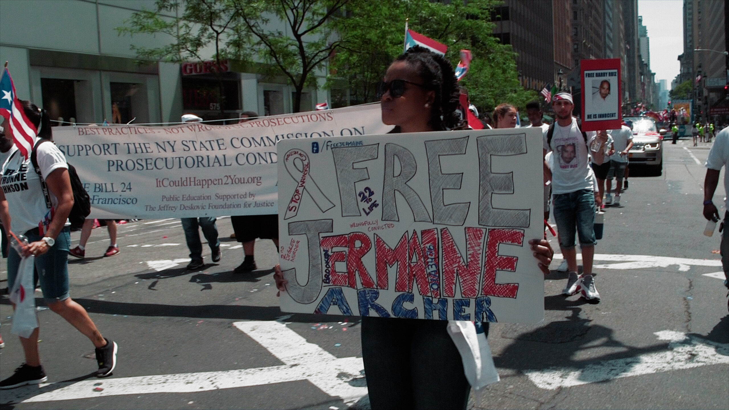 Man glaubt sich in einem Thriller, dessen Drehbuch das Leben und das US-amerikanische Justizsystem schrieben. Ein Alltag im Ausnahmezustand, Szenen einer ungewöhnlichen Ehe. Zeitlich begrenzte Telefonate aus dem Gefängnis, unzählige Besuche im Anwaltsbüro, Auftritte bei Solidaritätsveranstaltungen für zu Unrecht verurteilte Afroamerikaner. Michelle arbeitet als Anstreicherin für die Stadt New York, zieht ihre zwei Kinder alleine groß. Beiläufig erfahren wir, dass deren leiblicher Vater einem brutalen Verbrechen zum Opfer fiel. Es entsteht das Porträt einer selbstbewussten Frau, die uns an ihren Ängsten und Hoffnungen teilhaben lässt.“
