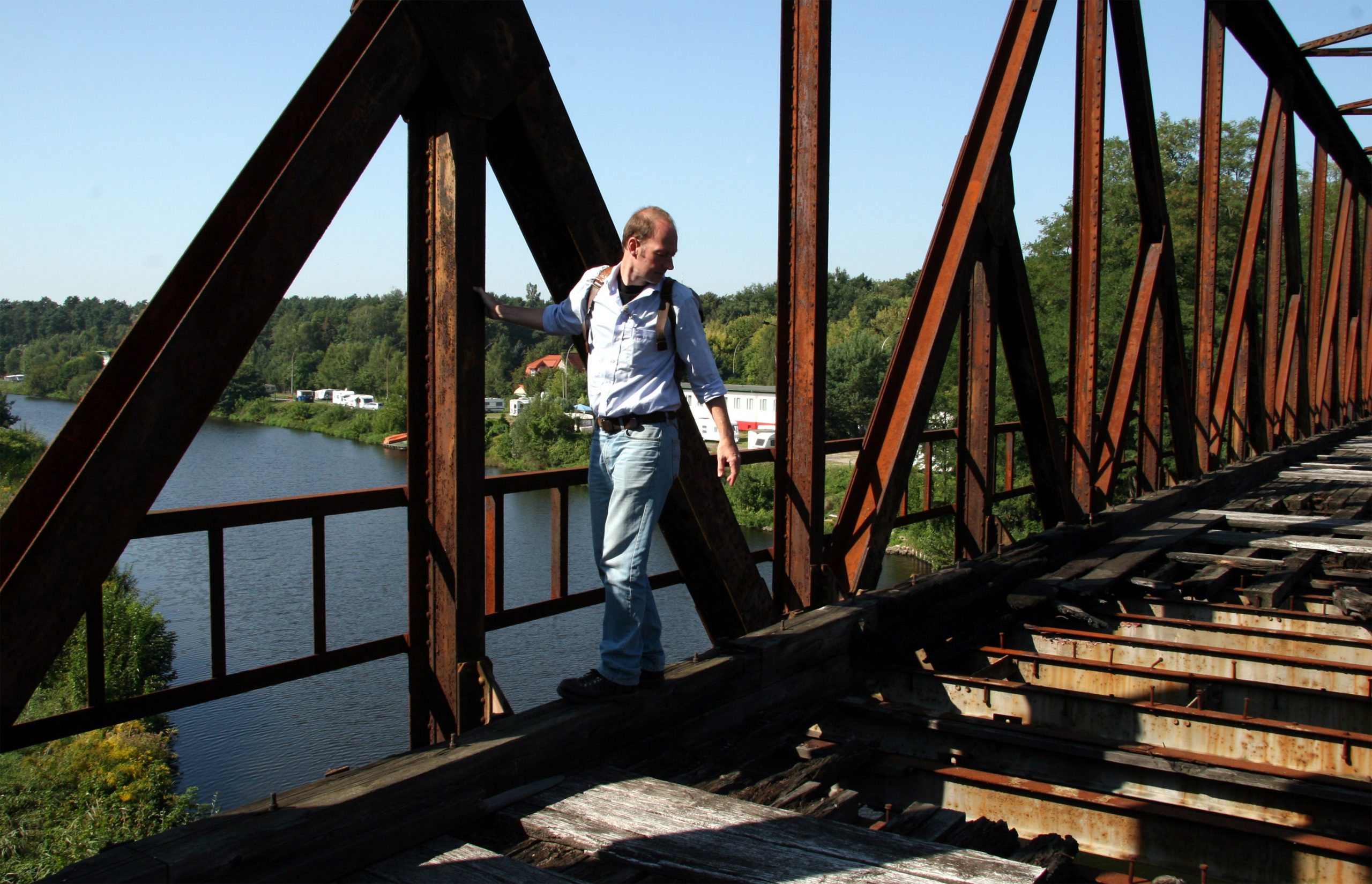 Martin Sonneborn ist Parteivorsitzender – und vielleicht der erste Mensch, der an der Glienicker Brücke die Havel in Richtung Osten durchschwimmt, um in die ehemalige Zone zu gelangen.