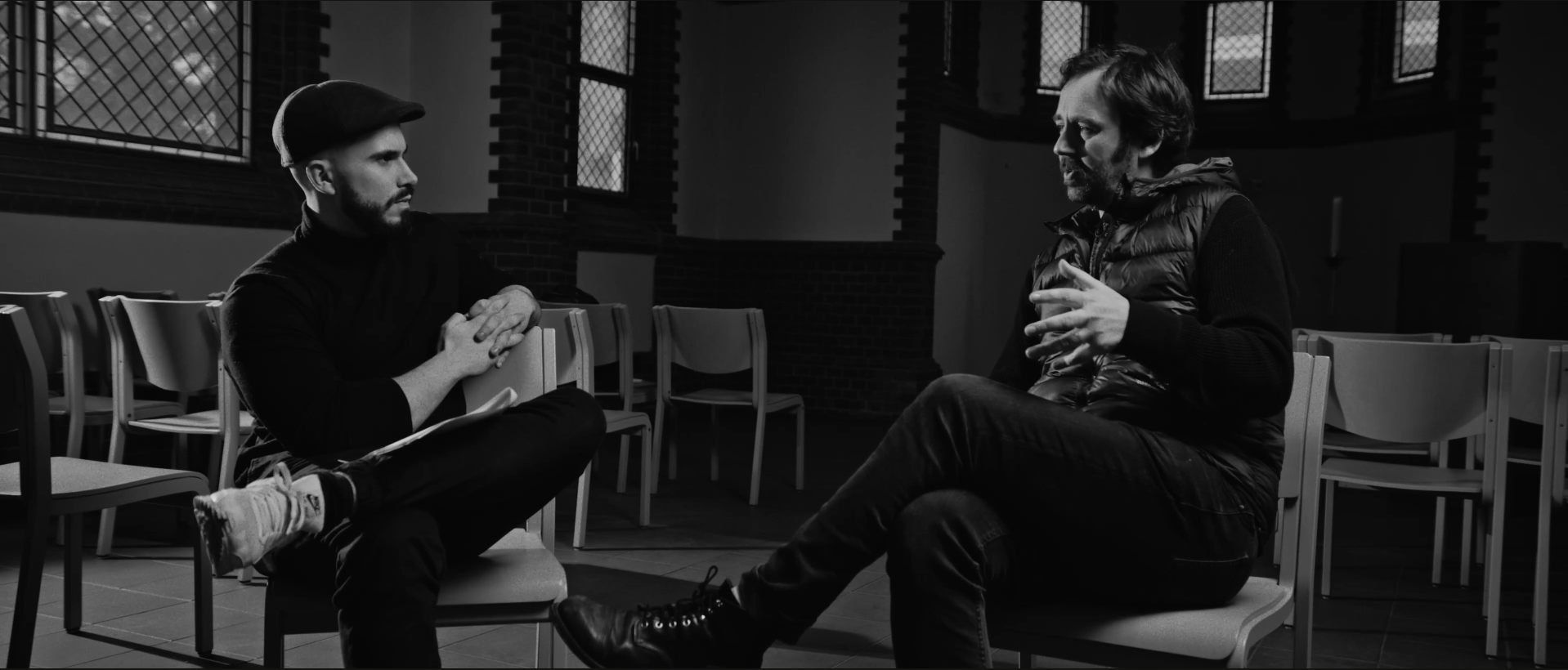Einen Film, der solche Fragen behandelt, wollte ich mit einem zeitlosen Look versehen. Als großer Fan von Saul Bass – der es wie kein anderer verstand, das Publikum thematisch zu „primen“, bevor der erste Dialog fiel – wollte ich den Inhalt in eine ähnliche Form gießen. Mit Animationen von unserem Motion Designer Arda Kilic, die größtenteils analog umgesetzt wurden, und der Entscheidung für einen Schwarz-Weiß-Look, der dem Film eine zeitlose